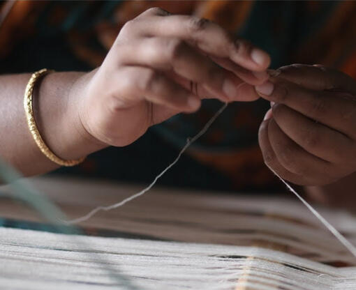 The cloth is made from cotton, but it may also include silk or wool, which are all spun into yarn on a charkha.
